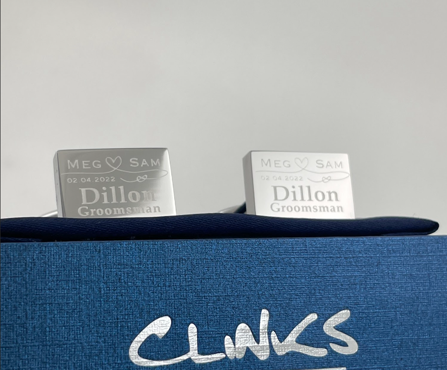 Personalize these cufflinks and make it yours. Clinks can engrave your initials or message on these square cufflinks. Available in Silver, Gold and Rose Gold