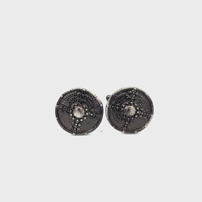 Channel the spirit of the Medieval warriors with these Antique Finish Viking Shield Cufflinks. Crafted with intricate detailing and a rugged gunmetal tone, they capture the look of a battle-worn shield with a central boss design. Bold and distinctive, these cufflinks are perfect for those who value strength, history, and fearless style. Finished in antique rhodium plating.