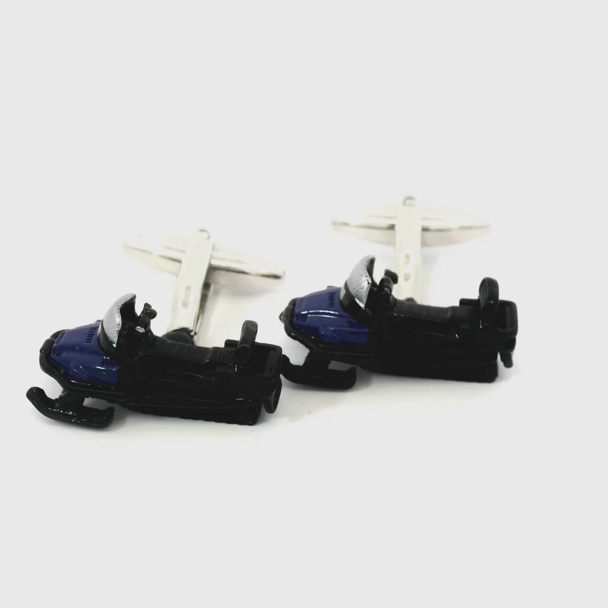 The perfect accessory for those who embrace adventure and style. Crafted with high-quality materials, these cufflinks feature a black snowmobile with a blue front and silver windscreen finished in enamel. Whether you're hitting the slopes or attending a formal event, these Coloured Snowmobile Cufflinks are sure to make a statement.