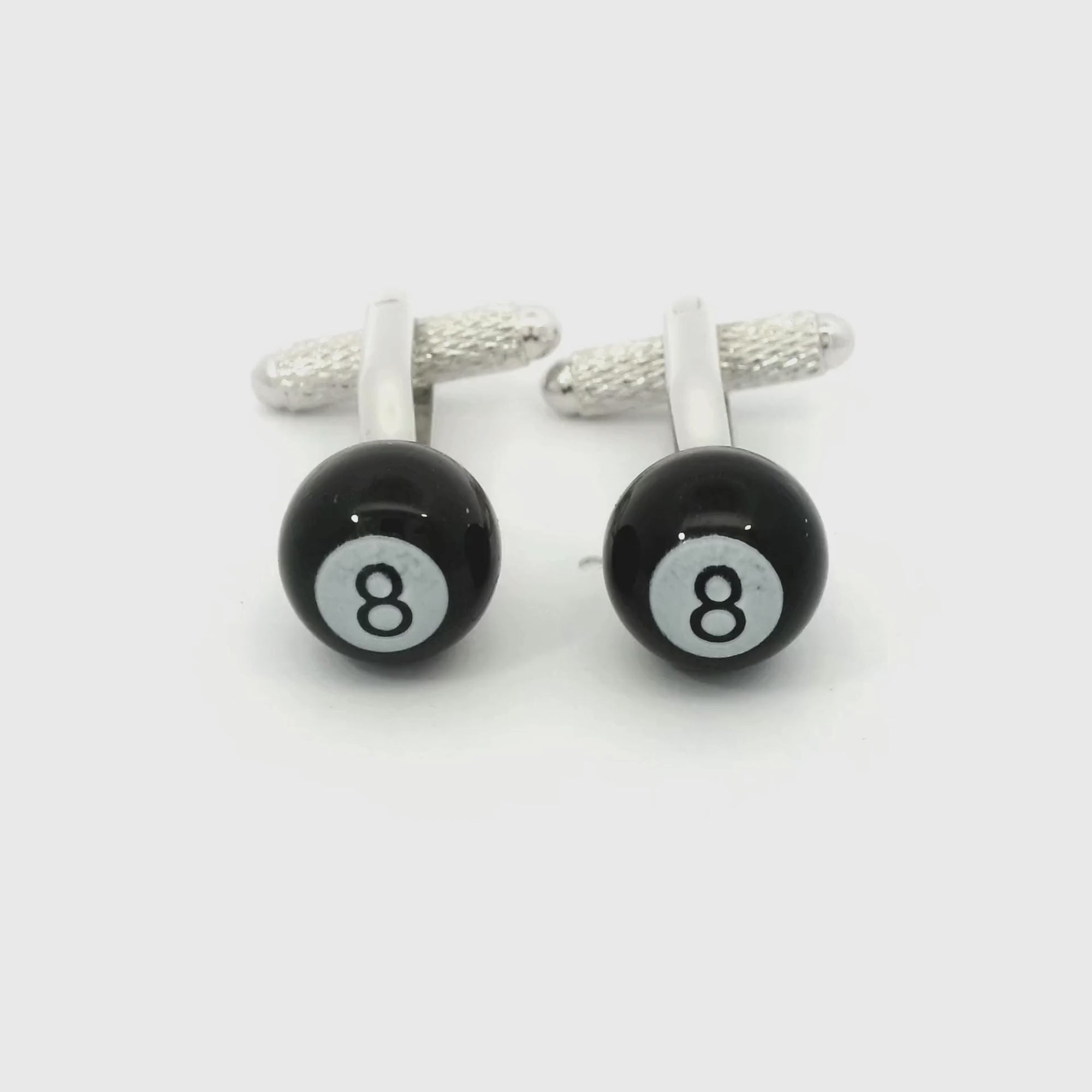 Introducing our Eight Ball Pool Cufflinks, a playful and stylish addition to your collection. These cufflinks feature miniature replicas of the iconic eight ball, intricately designed and finished in black.