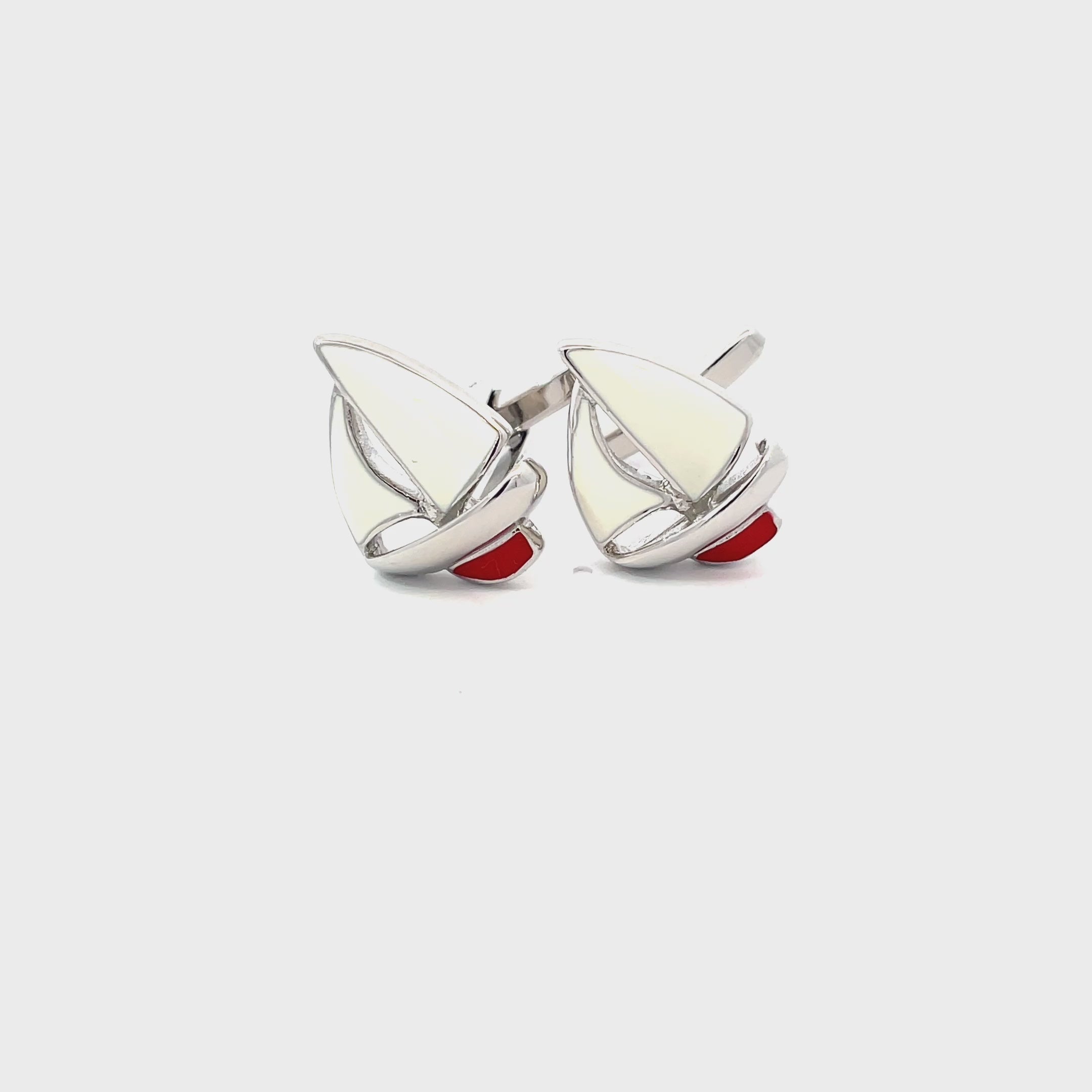 Set sail in style with these Enamel Red Keeled Yacht Cufflinks. Crafted in polished silver-tone metal with crisp white sails and a striking red keel, they capture the spirit of adventure and sophistication. Perfect for sailors, ocean lovers, or anyone who appreciates nautical-inspired elegance — these cufflinks are sure to make waves at any occasion. Finished in enamel and shiny rhodium plating.