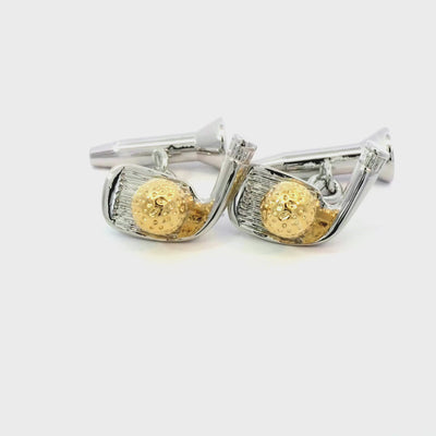 Perfect gift for the golf player in your family. These cufflinks feature a golf club with a ball on one end, and a tee on the other. Finished in shiny polished rhodium that resists tarnishing and wear.