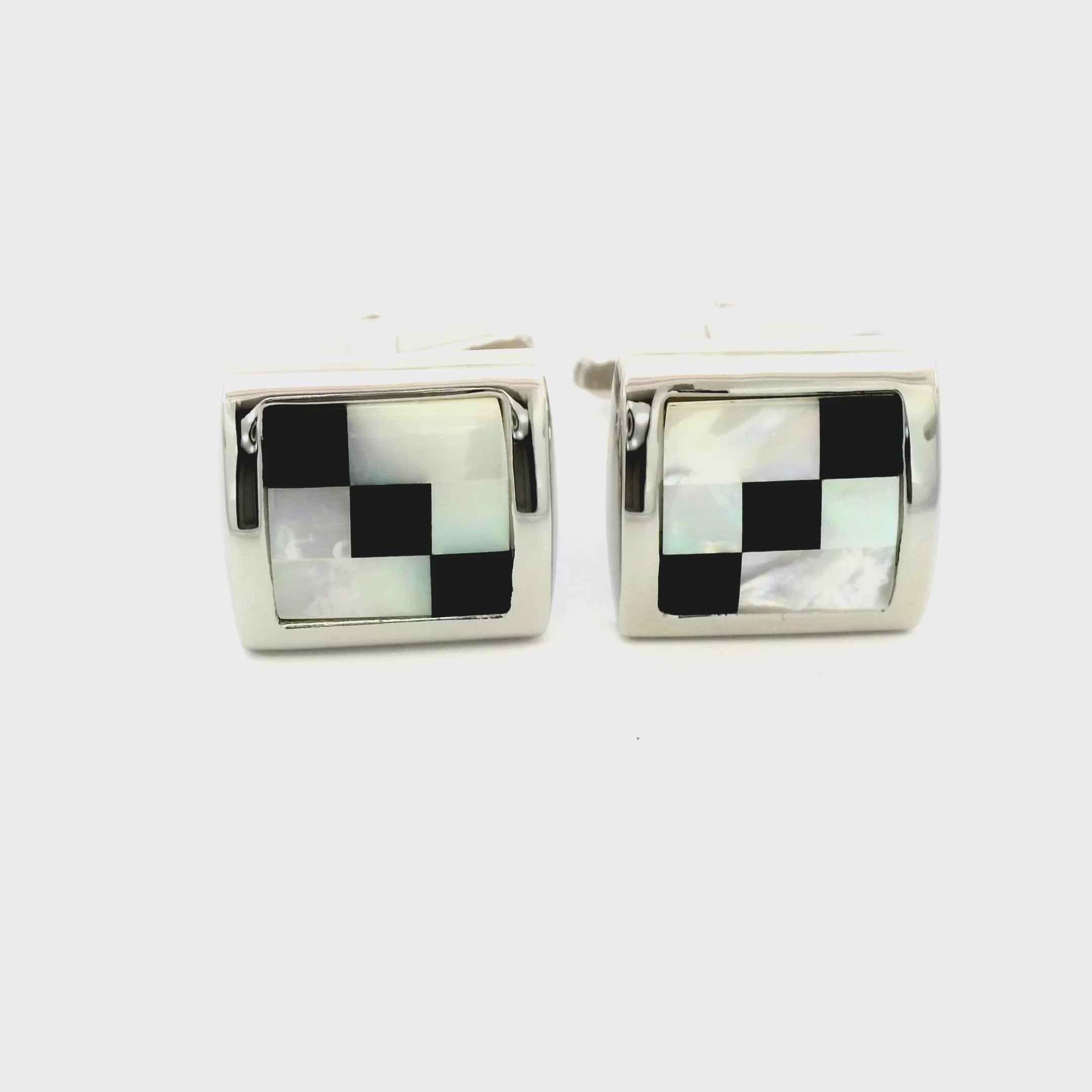 Elevate your sophistication with our Grey Check Cufflinks. A pair of excellent cateye cufflinks feature monochromatic shades of grey, perfect for adding a touch of elegance and timeless style to any formal ensemble.