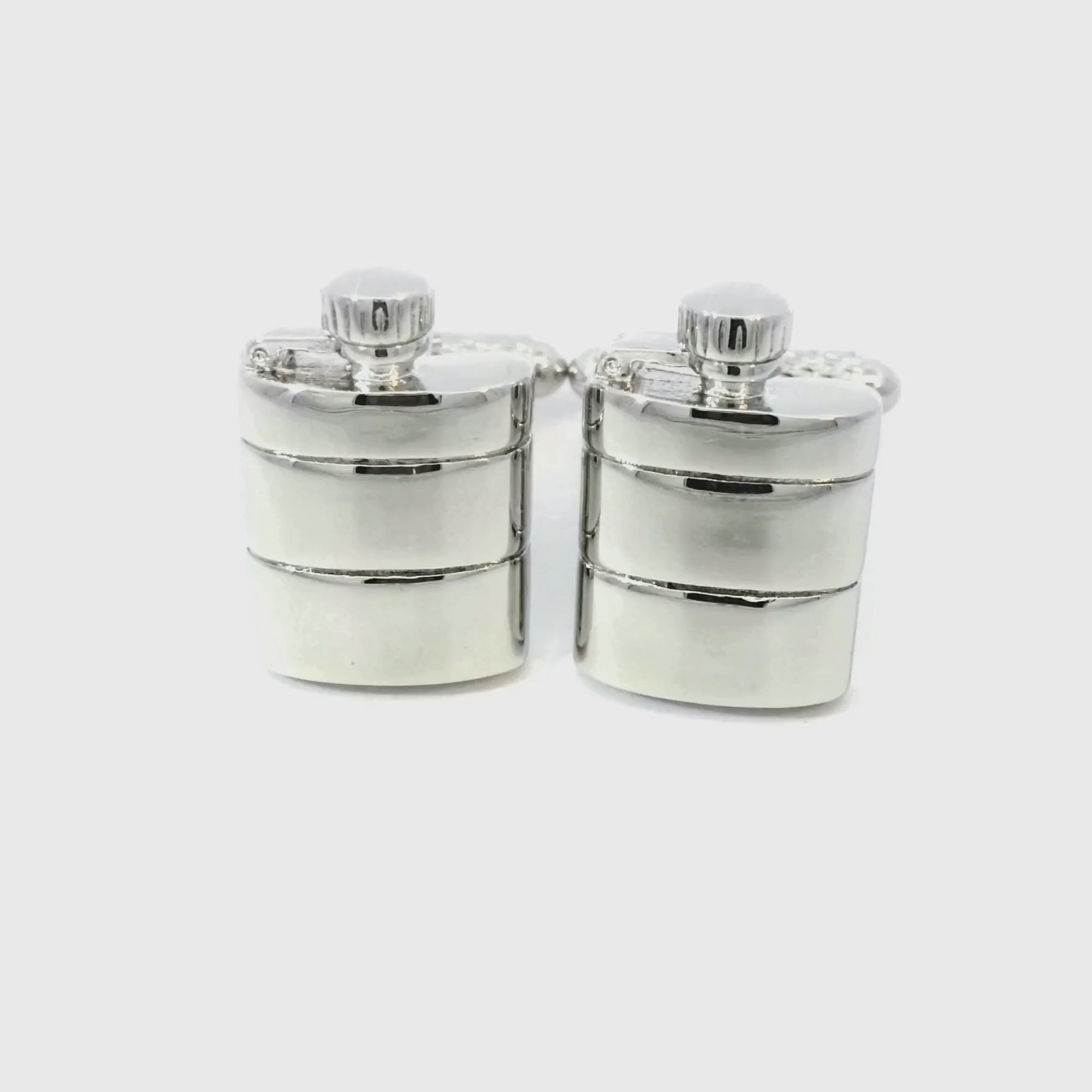 Celebrate in style with these Hip Flask Cufflinks! Designed to resemble a classic hip flask. Perfect for those who enjoy a good drink and a great sense of humor. Finished in shiny rhodium plating.