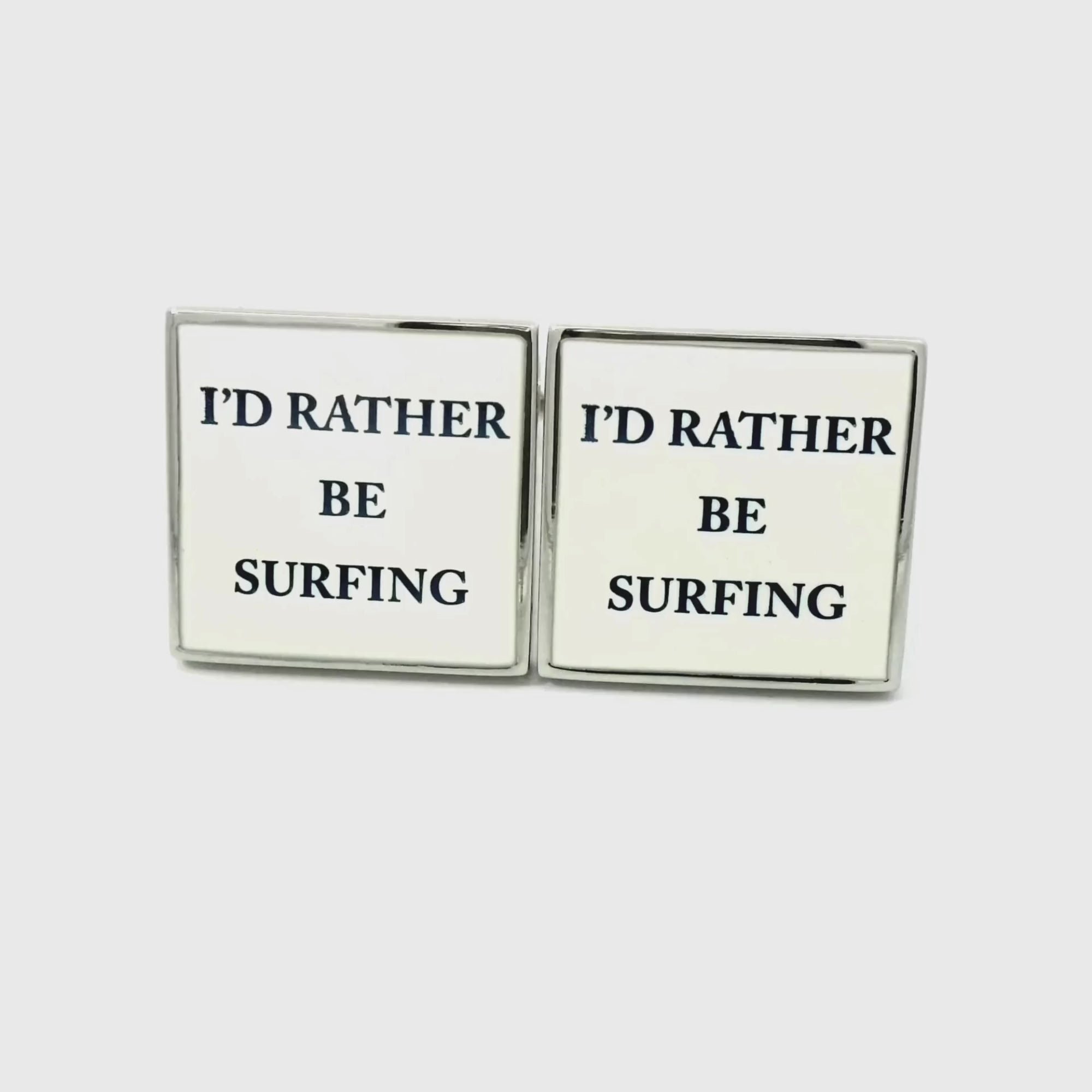 Show off your love for the waves with these "I'd Rather Be Surfing" Cufflinks. These rhodium-plated tile cufflinks feature the playful text "I'd rather be Surfing" on each cuff, making them the perfect accessory for surf enthusiasts.