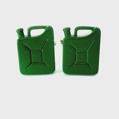 Add a splash of rugged charm with our Green Jerry Can Cufflinks! Designed to resemble the iconic jerry can, these cufflinks feature a vibrant green finish for a fresh, bold look. Finished in shiny rhodium plating.