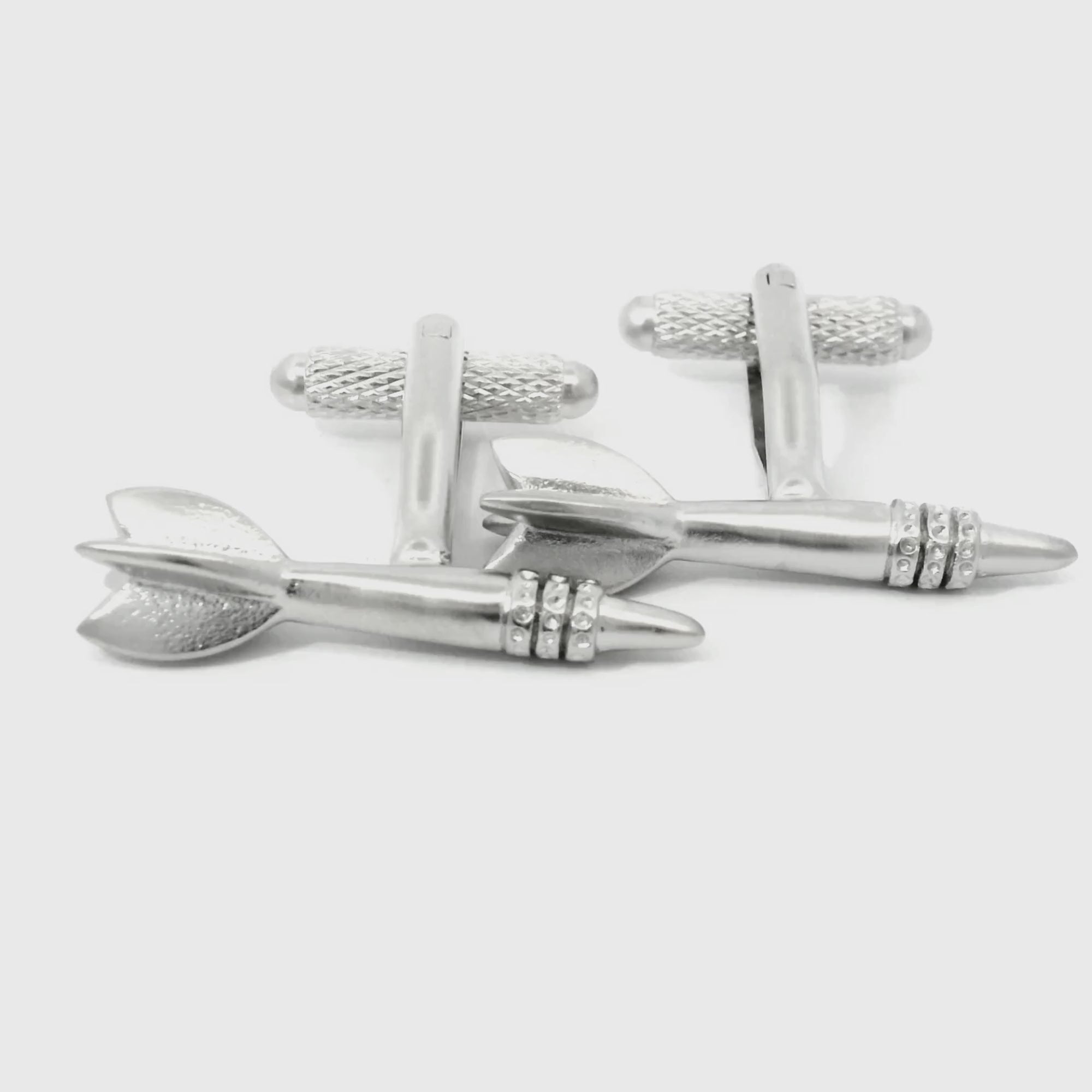 Hit the bullseye on style with these Lovely Darts Cufflinks. Crafted in sleek silver, these cufflinks feature a finely detailed dart design, an ideal gift for competitive players, pub game fans, or anyone who loves the thrill of the game. Finished in brushed rhodium plating.