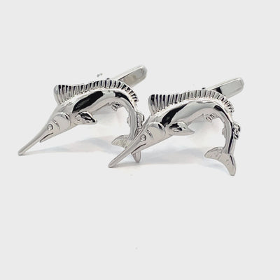 Embrace the spirit of the open sea with these Marlin Game Fishing Cufflinks. These beautiful cufflinks feature a silver-coloured Marlin fish with very nice detailing, depicting the best catch in the ocean. Finished in shiny rhodium plating.