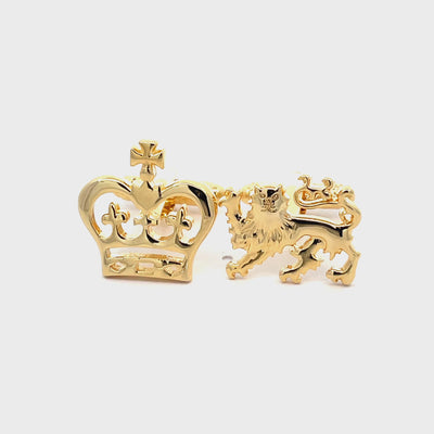 Exude regal sophistication with these Monarchist Cufflinks, featuring a striking crown and lion design. The intricate detailing of the royal crown and the heraldic lion adds a touch of prestige to any formal ensemble. Finished in shiny rhodium plating.