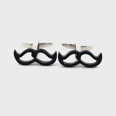 Add a touch of personality to your formal attire with these Moustache Outline Cufflinks in Black. Featuring a sleek, minimalist moustache design with a bold black finish, these cufflinks offer a modern twist on classic style. Finished in shiny rhodium plating.