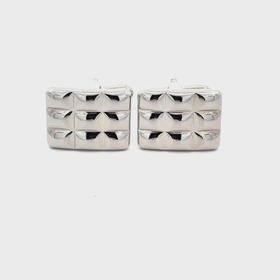 Add a bold edge to your look with these Nine Panel Cufflinks. Crafted with a sleek silver-tone finish, these cufflinks feature a distinctive raised panel design arranged in a symmetrical grid of nine. Finished in shiny rhodium plating.