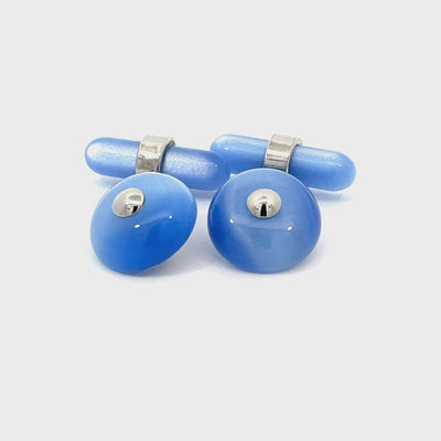 This pair of chain-fitting cufflinks feature a blue Catseye button with a silver colour, finished in high-quality rhodium plating. Whether accentuating a formal ensemble or adding refined detail to your attire, the Oracle Blue Cufflinks with Chain is the epitome of refined style, making a statement that is both classic and cutting-edge.