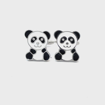 Add a dose of adorable to your formalwear with these Panda Cufflinks. Featuring a cute black-and-white enamel design with sparkling crystal eyes, these cufflinks are perfect for animal lovers, quirky dressers, or anyone looking to stand out with charm and character. Finished in enamel and shiny rhodium plating.