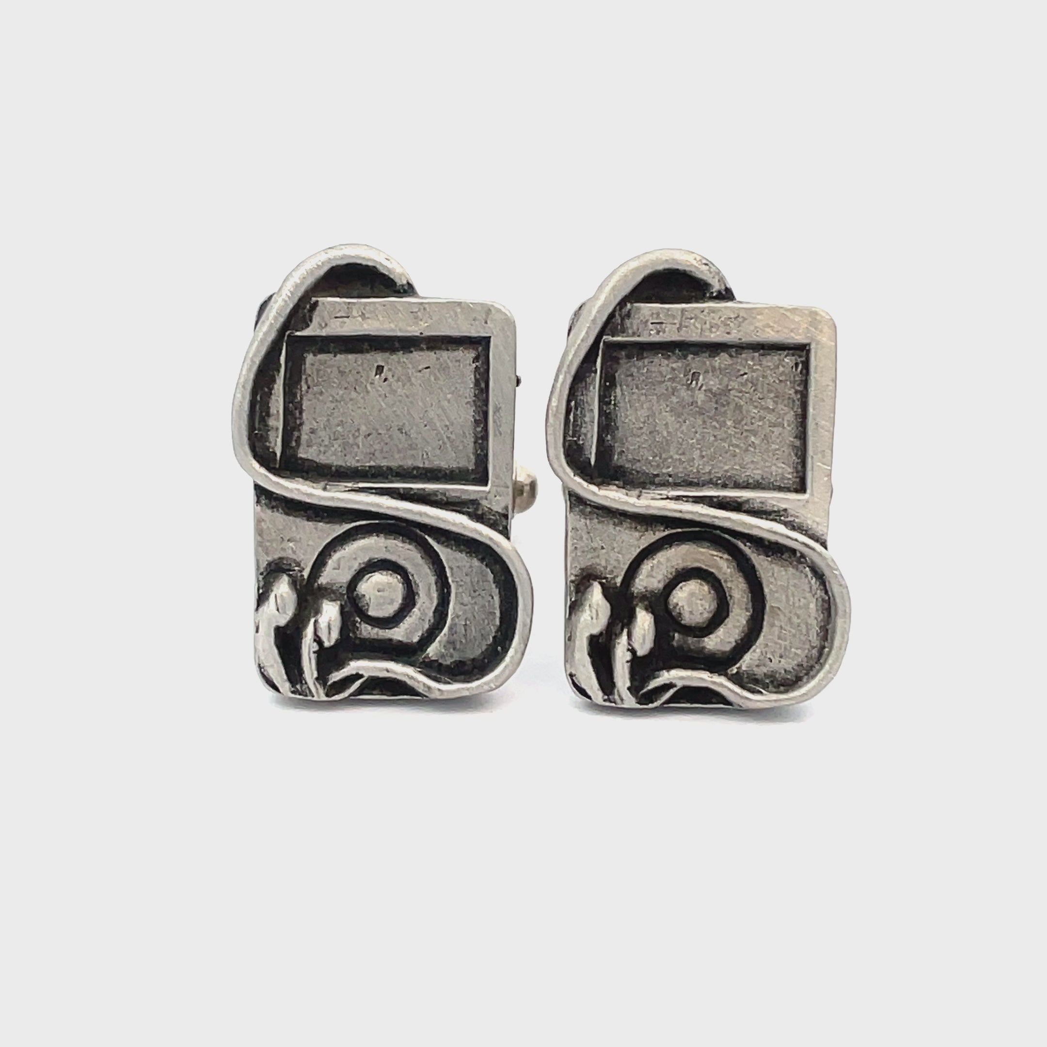 Add a nostalgic twist to your wardrobe with these unique Pewter iPod-Style Cufflinks. Crafted with a brushed antique finish, their retro design evokes the iconic silhouette of the classic iPod, complete with scroll wheel detailing. A perfect gift for music lovers and vintage tech enthusiasts alike.