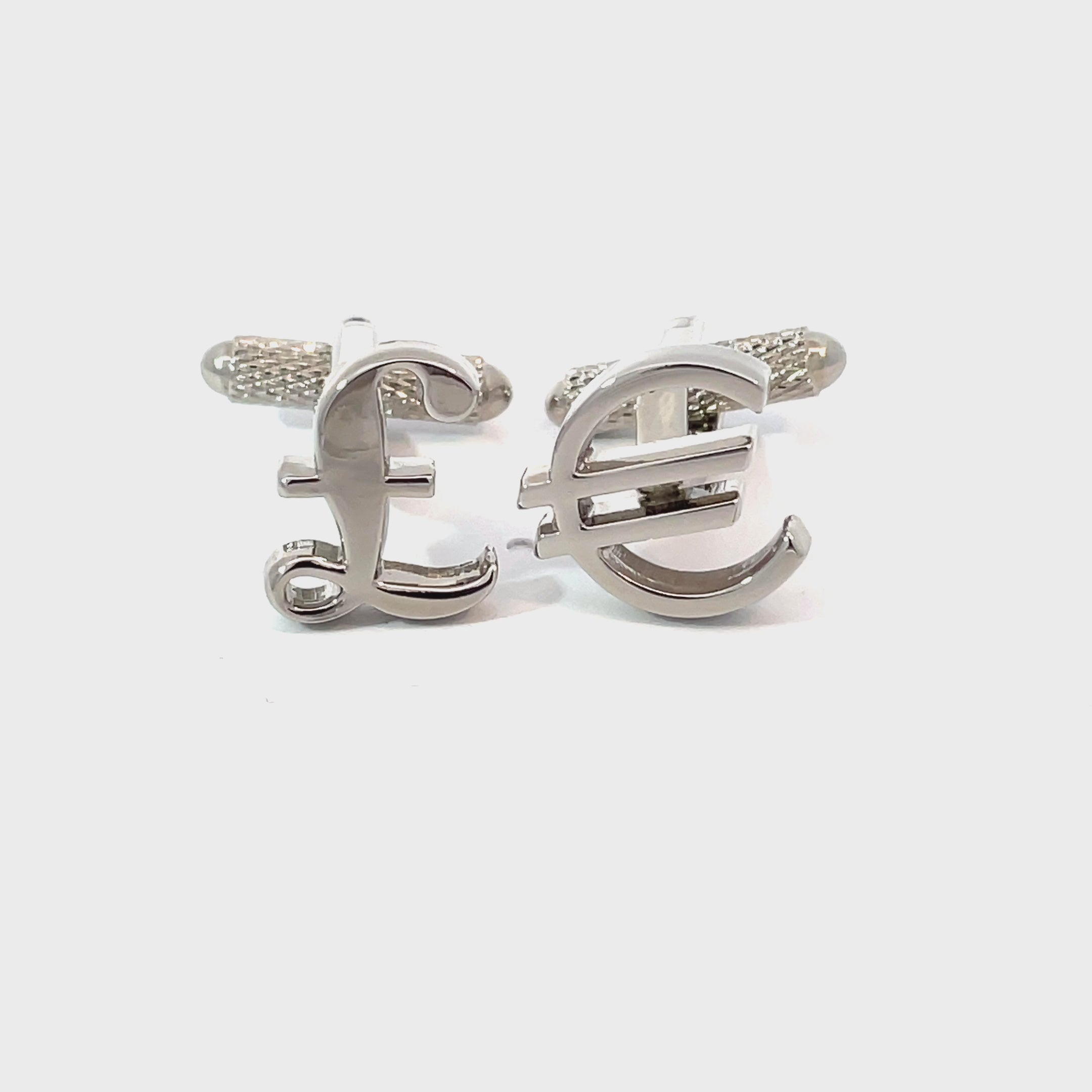 Show off your international flair with these stylish Pound Euro Cufflinks. Featuring the iconic £ and € currency symbols in polished silver-tone, this mismatched pair is perfect for world travelers, finance professionals, or anyone with a global outlook. Finished shiny rhodium plating.