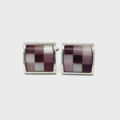 Add a refined touch to your look with these Purple Check Cufflinks. Featuring a sleek checkerboard pattern in shades of purple, mauve, and white with a glossy finish, these cufflinks offer a stylish blend of classic and contemporary. Finished in enamel and shiny rhodium plating.
