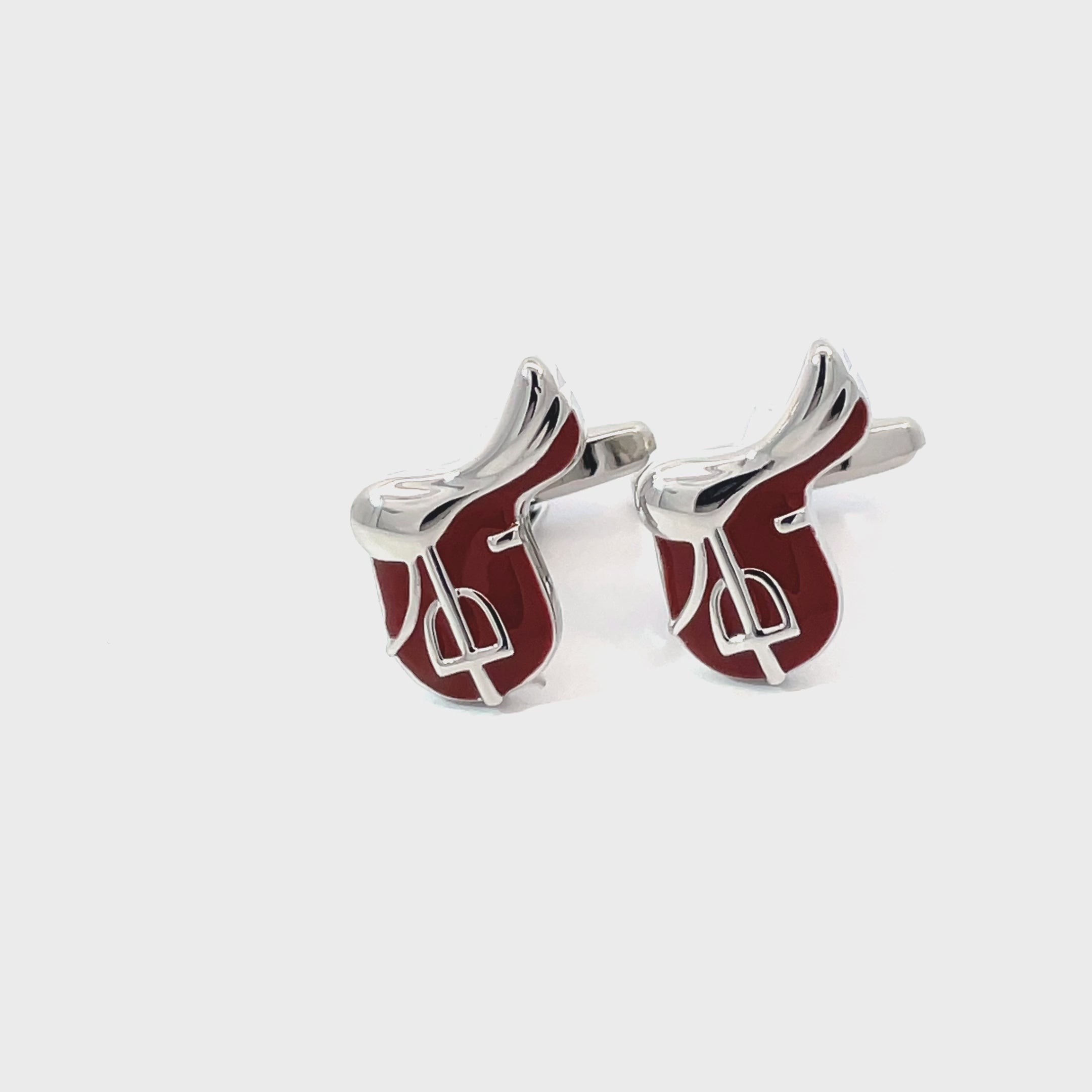 Saddle up in style with these brown enamel Saddle Cufflinks. Featuring polished silver detailing and stirrup accents, they’re the perfect pick for equestrian lovers or anyone with a flair for country charm. Finished in enamel and shiny rhodium plating.