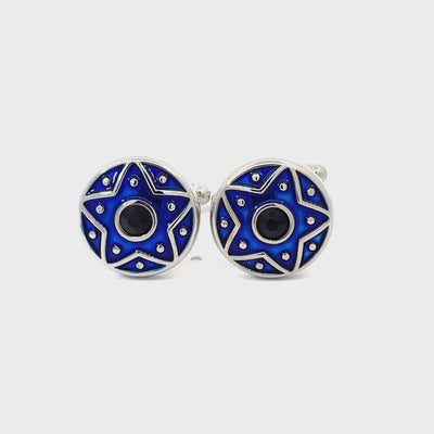 Bold, celestial, and brilliantly blue — our Seeing Stars Cufflinks are designed to make your formalwear shine. Featuring a striking star motif in vibrant enamel with a black centrepiece, these cufflinks add a cosmic touch to your outfit. Perfect for stargazers, dreamers, and those who love standing out from the crowd. Finished in enamel and shiny rhodium plating.