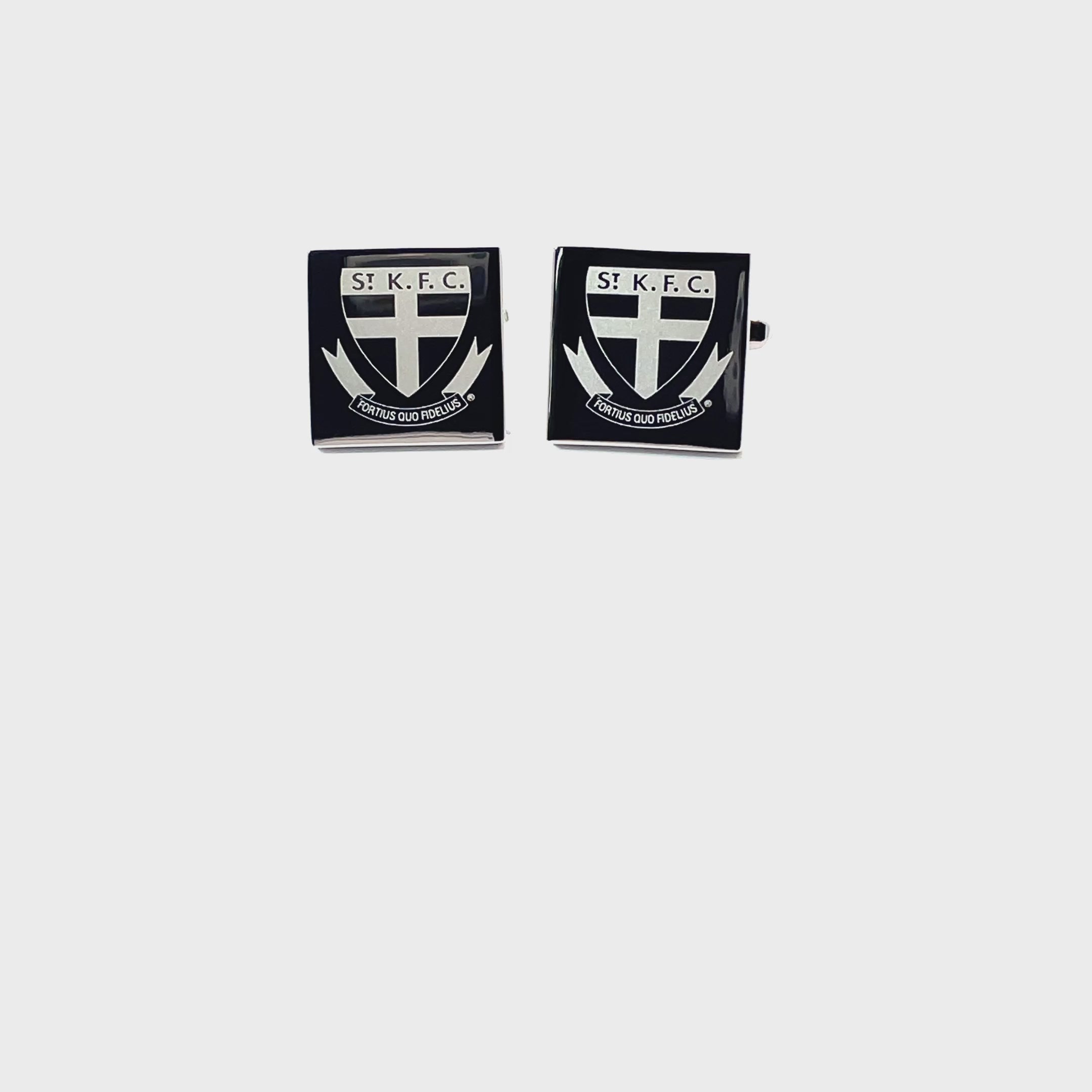 2009 and 2010 AFL Grand Finalists, the St. Kilda Saints are a founding member of the league. The red, white, and black heart and soul are their legions of proud supporters. Now you can wear your support on your sleeve with these stunning glossy stainless steel cufflinks, laser-etched with the famous St. Kilda FC crest.