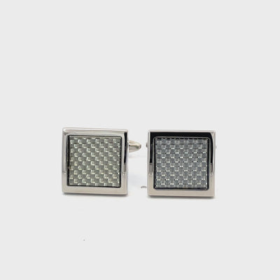 Square Silver Carbon Fibre Cufflinks