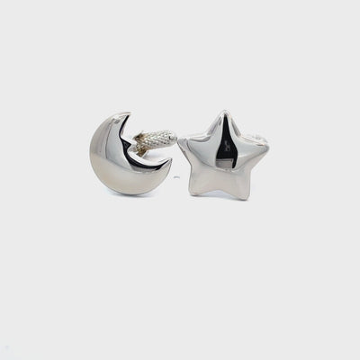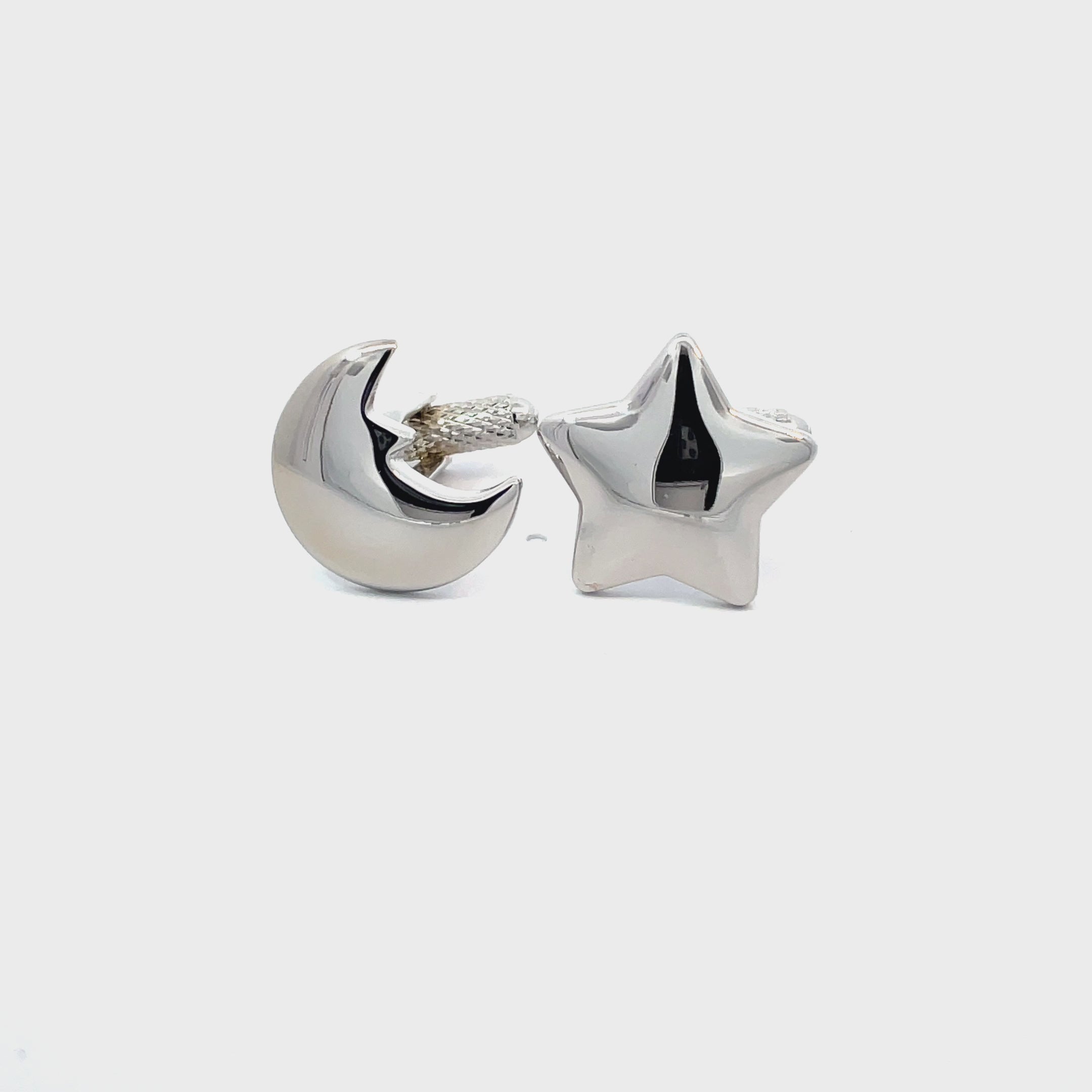Add a little celestial charm to your look with these Star & Moon Cufflinks. Featuring a sleek polished silver-tone star and crescent moon design, they’re a stylish and playful finishing touch for any shirt. Perfect for weddings, evenings out, or as a thoughtful gift for someone who loves the night sky. Finished in shiny rhodium plating.