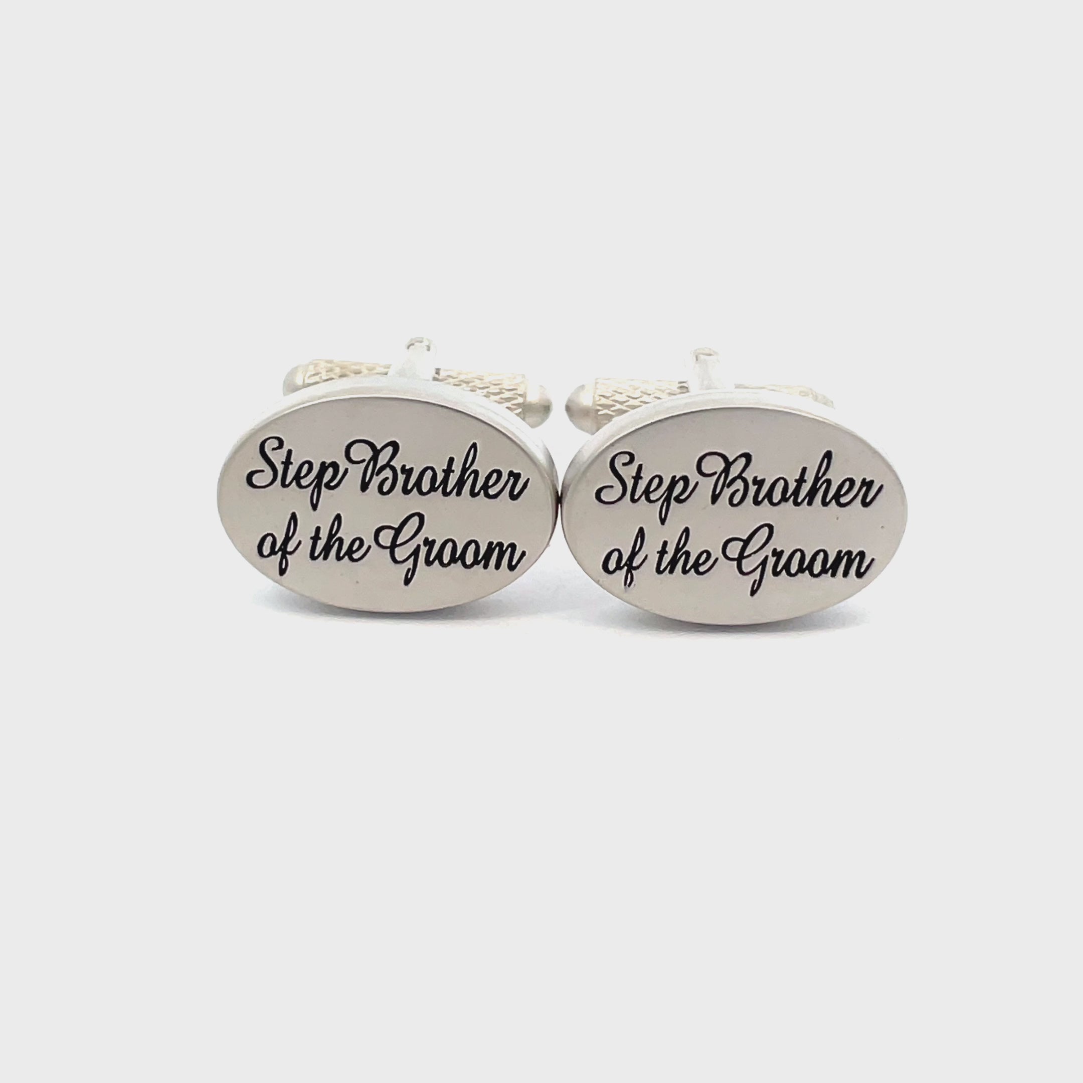 Complete the wedding look with these Step Brother of the Groom Script Wedding Cufflinks. Featuring an oval design with elegant script lettering, they’re a thoughtful finishing touch for the big day and a meaningful keepsake to remember the celebration. Perfect for wedding photos, ceremonies, and receptions. Finished in matte rhodium plating.