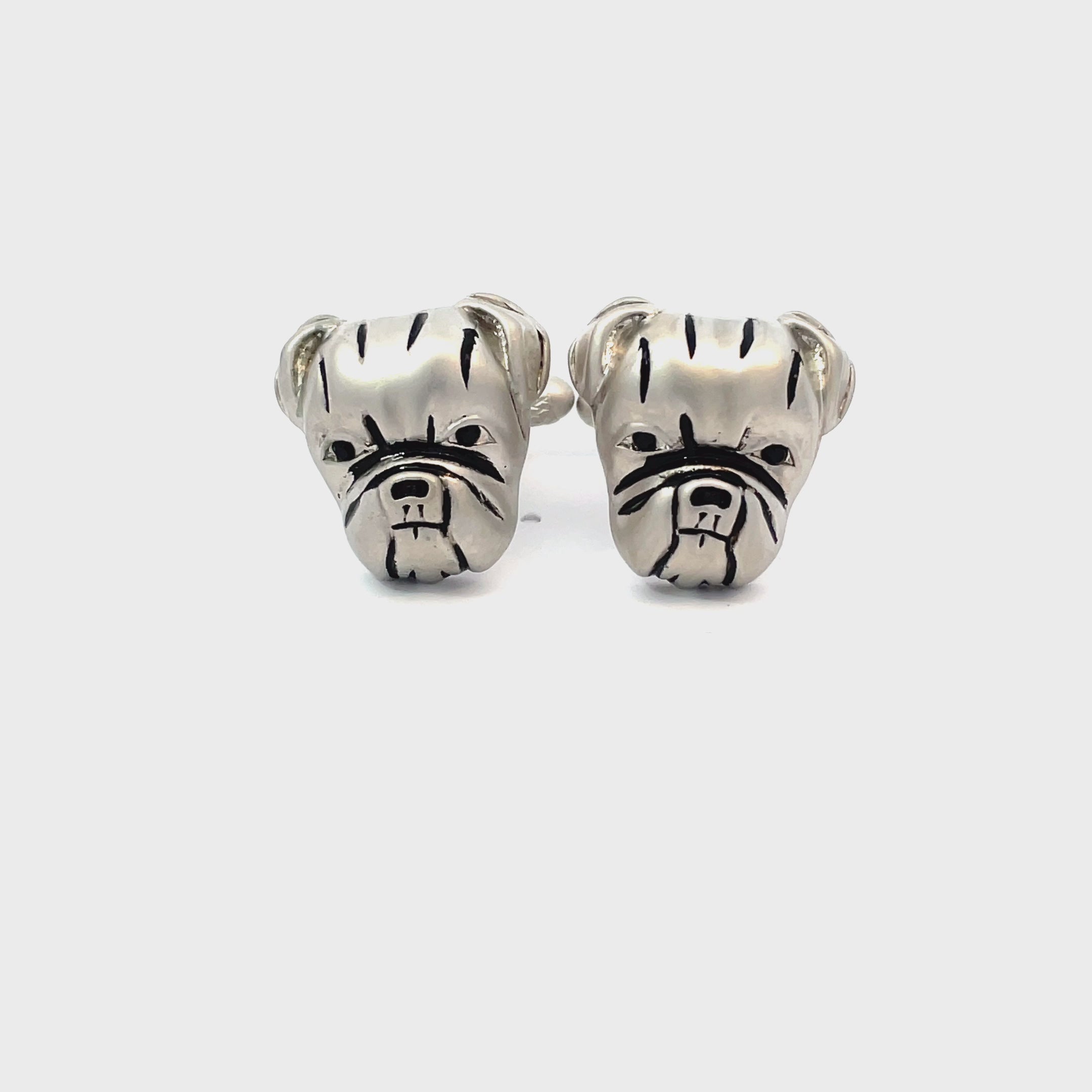 Show off your love for a true British icon with these Classic British Bulldog Cufflinks. Featuring a detailed silver-tone finish with hand-painted black enamel accents, these cufflinks capture the unmistakable charm and gruff expression of the beloved bulldog. Finished in matte rhodium plating.