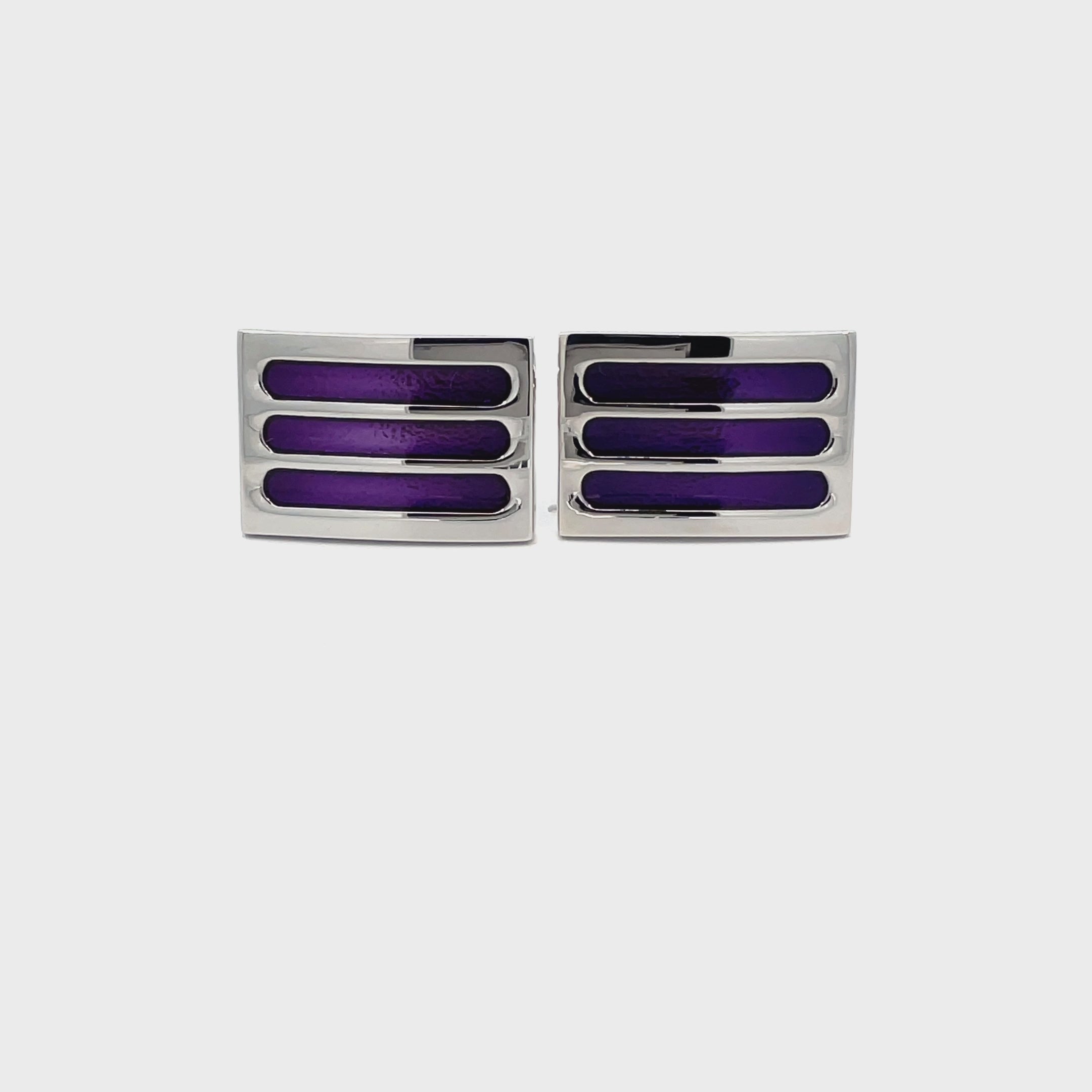 Add a bold splash of colour to your cuff with these Three Purple Lines Cufflinks. Featuring a sleek silver-tone rectangular base with three horizontal deep purple enamel inlays, they strike the perfect balance between modern edge and refined style. Finished in enamel and shiny rhodium plating.